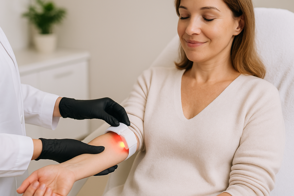 A Cicatrize oferece ILIBterapia no Rio de Janeiro, uma técnica moderna que utiliza laser de baixa intensidade aplicado sobre o pulso para estimular o sangue e gerar efeitos terapêuticos em todo o organismo.